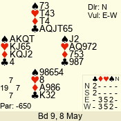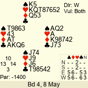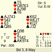Con | Dc | Res | Score | Ld | Pairs | Rd | Tbl | 3 NT | S | -1 | -100 | T | 01 - 03 | 2 | 1 |