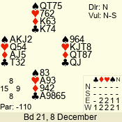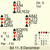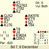 | 3 NT | W | +1 | -630 | 3 | 10 - 07 | 4 | 10 |