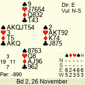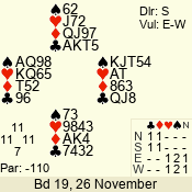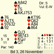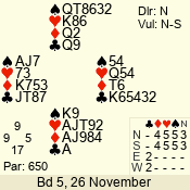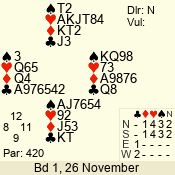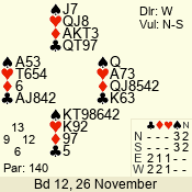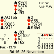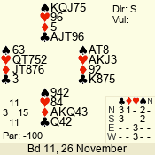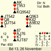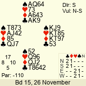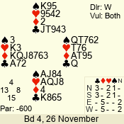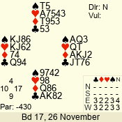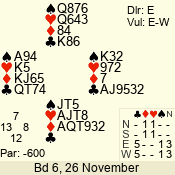 | 3 NT | W | +1 | -430 | 3 | 08 - 06 | 6 | 1 |