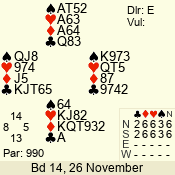 | 3 NT | E | +1 | -630 | 2 | 02 - 05 | 4 | 4 |