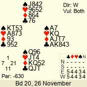 | 3 NT | W | +1 | -430 | 2 | 08 - 06 | 6 | 1 |