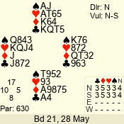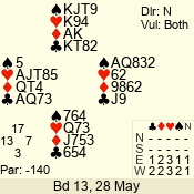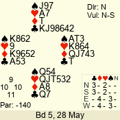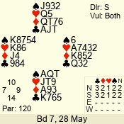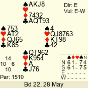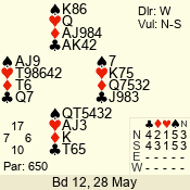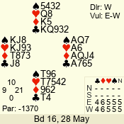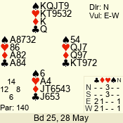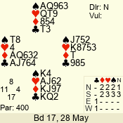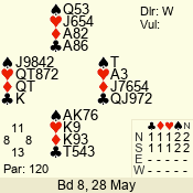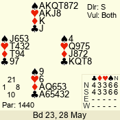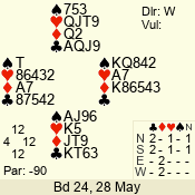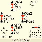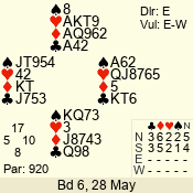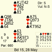 Con | Dc | Res | Score | Ld | Pairs | Rd | Tbl | 6 NT | N | +1 | 1020 | 4 | 09 - 07 | 3 | 9 |