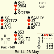 Con | Dc | Res | Score | Ld | Pairs | Rd | Tbl | 2 NT | E | -2 | 200 | 3 | 03 - 04 | 13 | 3 |