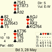 3 NT | W | +2 | -660 | T | 04 - 06 | 12 | 4 |