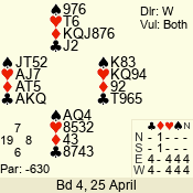 3 NT | W | +1 | -630 | 7 | 04 - 08 | 13 | 4 |
