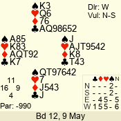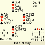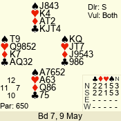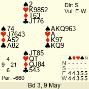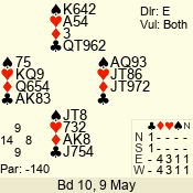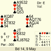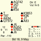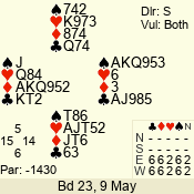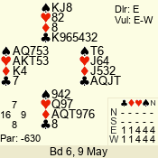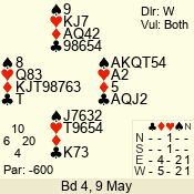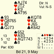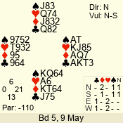 Con | Dc | Res | Score | Ld | Pairs | Rd | Tbl | 4  | E | -5 | 500 | 5 | 06 - 06 | 15 | 6 |