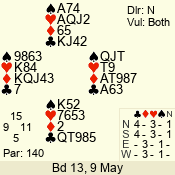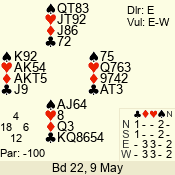 Con | Dc | Res | Score | Ld | Pairs | Rd | Tbl | 3 N | E | -1 | 100 | 5 | 02 - 11 | 22 | 2 |