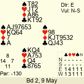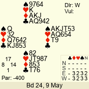 Con | Dc | Res | Score | Ld | Pairs | Rd | Tbl | 6 N | E | -2 | 200 | J | 04 - 11 | 24 | 4 |