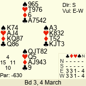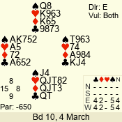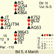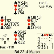| 3 NT | E | +1 | -630 | 5 | 17 - 08 | 10 | 5 |