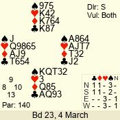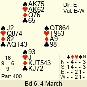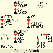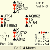 | 3 NT | S | -2 | -200 | 6 | 18 - 03 | 4 | 6 |