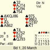 | Con | Dc | Res | Score | Ld | Pairs | Rd | Tbl | 4  | S | +1 | 450 | A | 08 - 10 | 9 | 8 |
