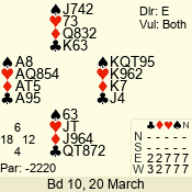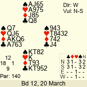 | 3 NT | W | +2 | -460 | K | 02 - 09 | 12 | 2 |