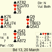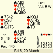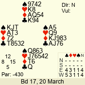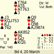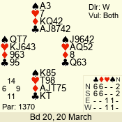 | 3 NT | W | +1 | -430 | 5 | 07 - 04 | 4 | 7 |