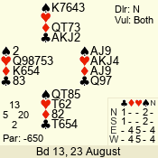 3 NT | W | +1 | -430 | 3 | 09 - 05 | 5 | 1 |