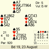 Con | Dc | Res | Score | Ld | Pairs | Rd | Tbl | 3 NT | S | +2 | 460 | 6 | 06 - 05 | 7 | 5 |