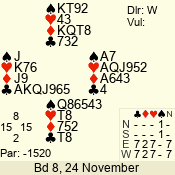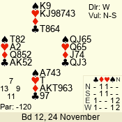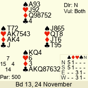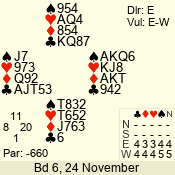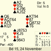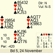 3 NT | E | +1 | -630 | 3 | 05 - 05 | 11 | 5 |