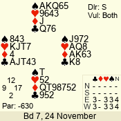 Con | Dc | Res | Score | Ld | Pairs | Rd | Tbl | 3 NT | S | +1 | 430 | A | 03 - 07 | 7 | 3 |