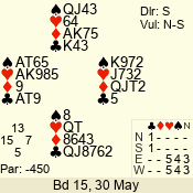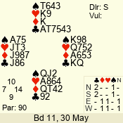 Con | Dc | Res | Score | Ld | Pairs | Rd | Tbl | 3 NT | S | +1 | 430 | J | 11 - 11 | 1 | 11 |