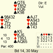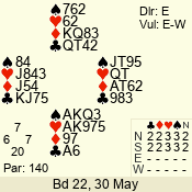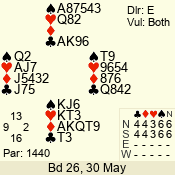 Con | Dc | Res | Score | Ld | Pairs | Rd | Tbl | 3 NT | E | -2 | 200 | Q | 13 - 03 | 11 | 13 |