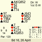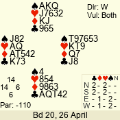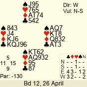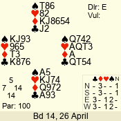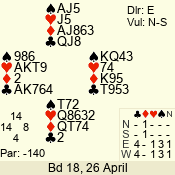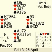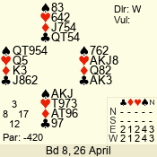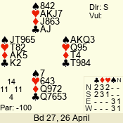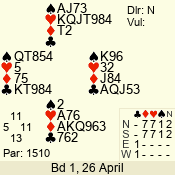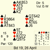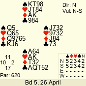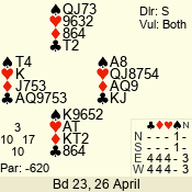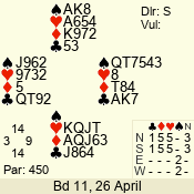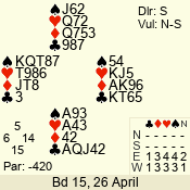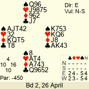Con | Dc | Res | Score | Ld | Pairs | Rd | Tbl | 4  | S | +1 | 450 | 2 | 02 - 05 | 7 | 2 |