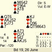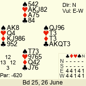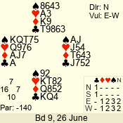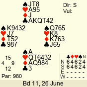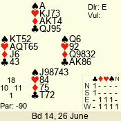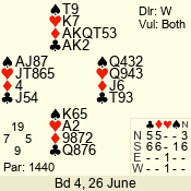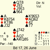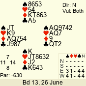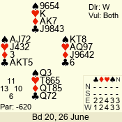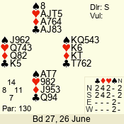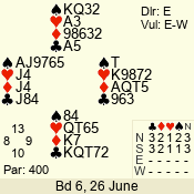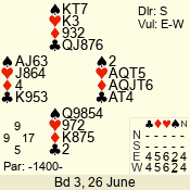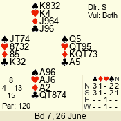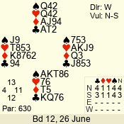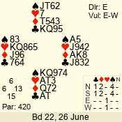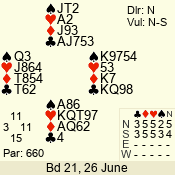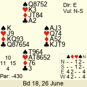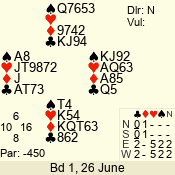 3 NT | E | +1 | -430 | 6 | 08 - 01 | 8 | 8 |