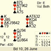 3 NT | E | +1 | -430 | 5 | 08 - 06 | 3 | 8 |