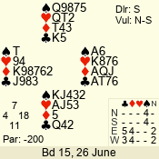 Con | Dc | Res | Score | Ld | Pairs | Rd | Tbl | 3 NT | E | -4 | 200 | 6 | 09 - 03 | 7 | 9 |