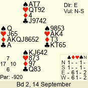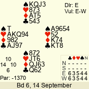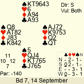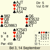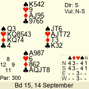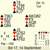 3 NT | S | +1 | 430 | 4 | 14 - 05 | 10 | 14 |