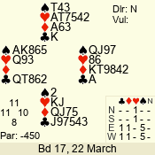 Con | Dc | Res | Score | Ld | Pairs | Rd | Tbl | 4  | N | +1 | 450 | 3 | 04 - 01 | 4 | 4 |
