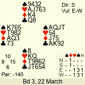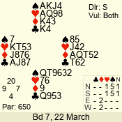 3 NT | S | +1 | 630 | 6 | 04 - 03 | 2 | 4 |