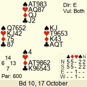3 NT | E | +1 | -630 | 4 | 11 - 10 | 2 | 11 |