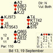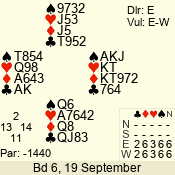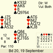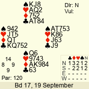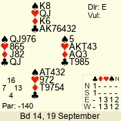 Con | Dc | Res | Score | Ld | Pairs | Rd | Tbl | 2 N | N | +2 | 180 | 4 | 18 - 16 | 3 | 18 |