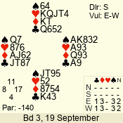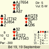 Con | Dc | Res | Score | Ld | Pairs | Rd | Tbl | 3 N | E | -3 | 300 | 2 | 12 - 08 | 5 | 12 |