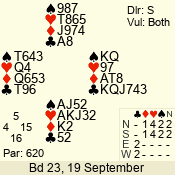 Con | Dc | Res | Score | Ld | Pairs | Rd | Tbl | 4  | S | = | 620 | 9 | 11 - 07 | 5 | 11 |