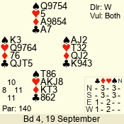 Con | Dc | Res | Score | Ld | Pairs | Rd | Tbl | 1  | N | +4 | 200 | 3 | 06 - 15 | 10 | 6 |