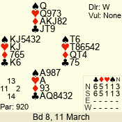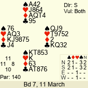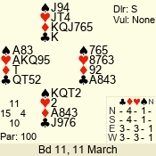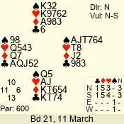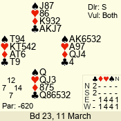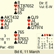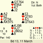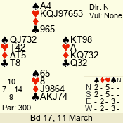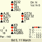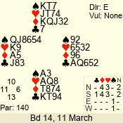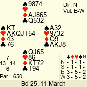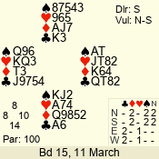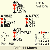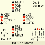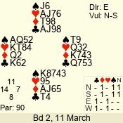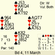 Con | Dc | Res | Score | Ld | Pairs | Rd | Tbl | 3 N | S | = | 400 | 3 | 14 - 02 | 13 | 14 |