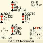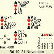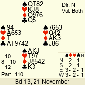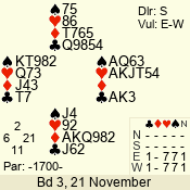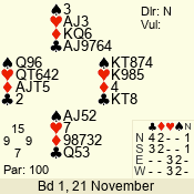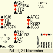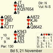 3 NT | S | +1 | 630 | J | 05 - 11 | 8 | 5 |
