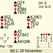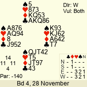 3 NT | E | +1 | -430 | 3 | 05 - 01 | 7 | 4 |