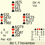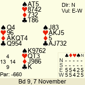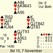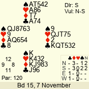 Con | Dc | Res | Score | Ld | Pairs | Rd | Tbl | 1 NT | W | -3 | 150 | 6 | 03 - 03 | 1 | 3 |
