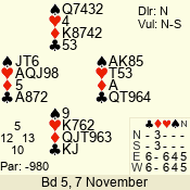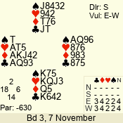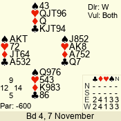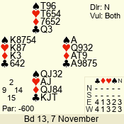 Con | Dc | Res | Score | Ld | Pairs | Rd | Tbl | 3 NT | N | = | 600 | 3 | 03 - 02 | 2 | 3 |