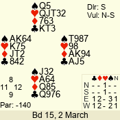 | Con | Dc | Res | Score | Ld | Pairs | Rd | Tbl | 2  | S | +1 | 140 | 5 | 06 - 01 | 6 | 6 |