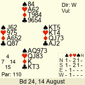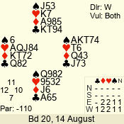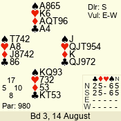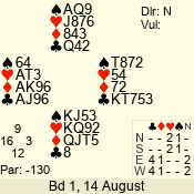 3 NT | S | +1 | 430 | 5 | 08 - 01 | 8 | 8 |