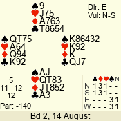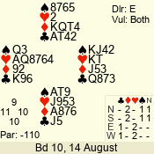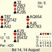 3 NT | E | +1 | -430 | 4 | 07 - 10 | 8 | 7 |