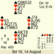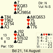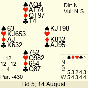 3 NT | S | +1 | 430 | 7 | 04 - 07 | 8 | 4 |