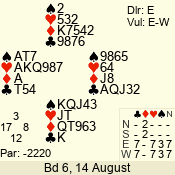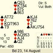 3 NT | S | +1 | 430 | 7 | 08 - 07 | 2 | 8 |