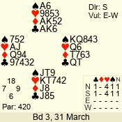3 NT | W | +2 | -660 | 9 | 02 - 01 | 2 | 2 |