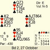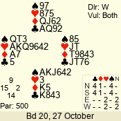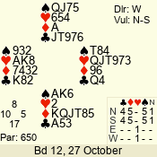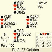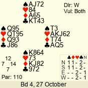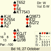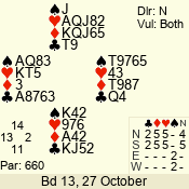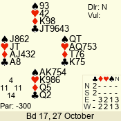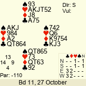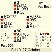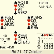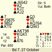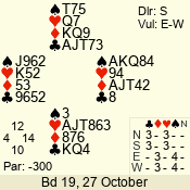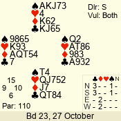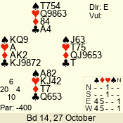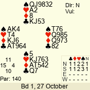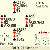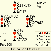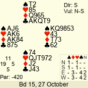 | 3 NT | S | +1 | 630 | 5 | 04 - 06 | 7 | 4 |