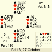 | Con | Dc | Res | Score | Ld | Pairs | Rd | Tbl | 2  | S | +1 | 110 | T | 04 - 02 | 3 | 4 |