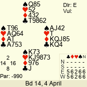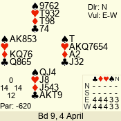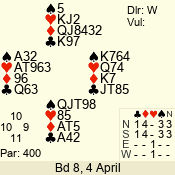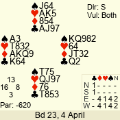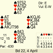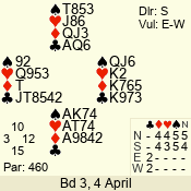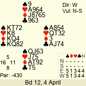 3 NT | W | +1 | -430 | 2 | 04 - 03 | 2 | 4 |