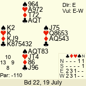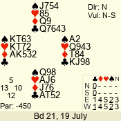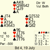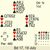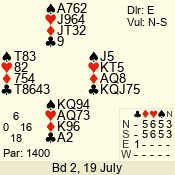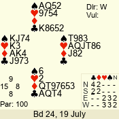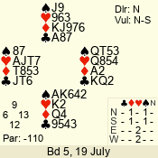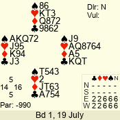 | 3 NT | E | +1 | -430 | 5 | 02 - 05 | 4 | 2 |